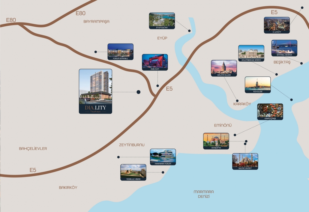 Dia Lity will place you right at the heart of business life. Whether you use the office or work as a home office, everything is just a reach away in Topkapi, at the heart of Istanbul…